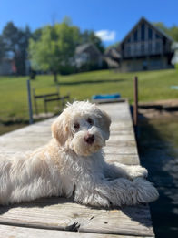 Willow was the pick of the litter puppy from our first ever litter! She is an even balance of sweet and snuggly and fun and playful, which makes her fit in perfectly with her guardian family. She adores her 3 kids and loves nothing more than going on long walks with them and make them laugh. We can't wait to see her future puppies someday!